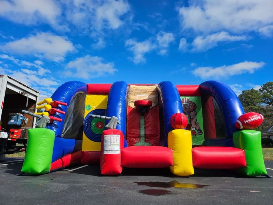 Don't miss out on this exciting party must have! Reserve your Multi Game Inflatable unit now and make your event unforgettable. Whether you're in Rocky Mount, Roanoke Rapids, Wilson, Nashville, Spring Hope, Louisburg, Bailey, Tarboro, or any of the surrounding areas, we've got you covered.
