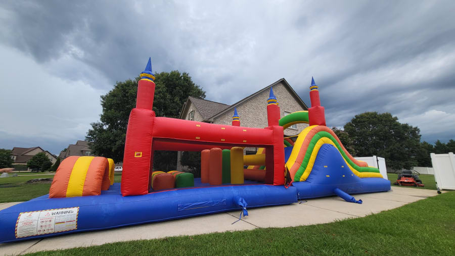With 50 feet of big inflatable fun, arches, obstacles, climbing wall, and finish with a big slide, you and your friends will not want to stop. This is a BIG hit with the older kids and EVEN THE ADULTS!